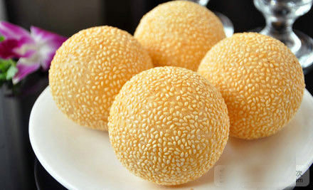 外形滾圓飽滿,色澤金黃,皮薄香脆,內甜糯