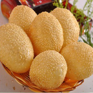 外形滾圓飽滿,色澤金黃,皮薄香脆,內(nèi)甜糯